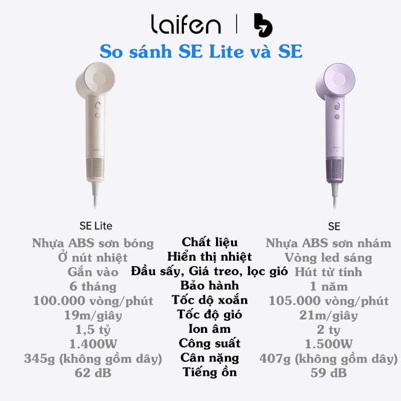 - Tên sản phẩm: Máy sấy tóc Laifen SE Lite